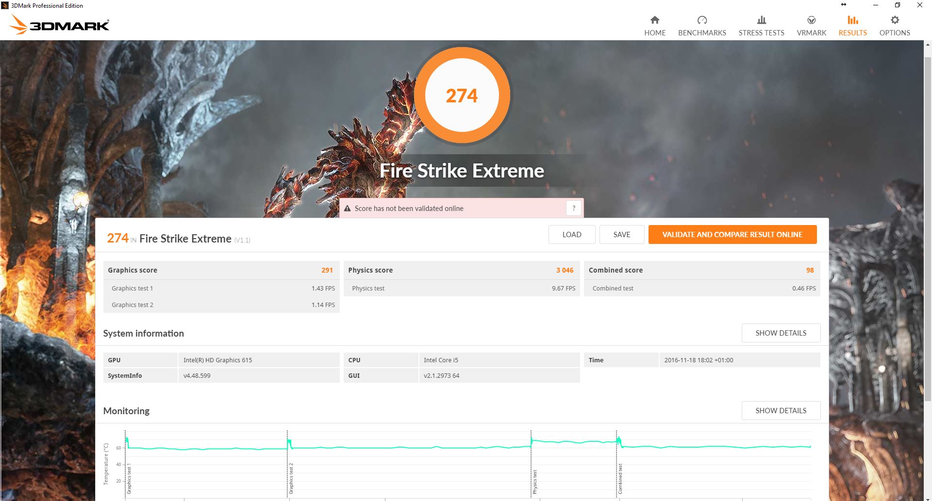| 3DMark Fire Strike Extreme Score | 274 Punkte | |