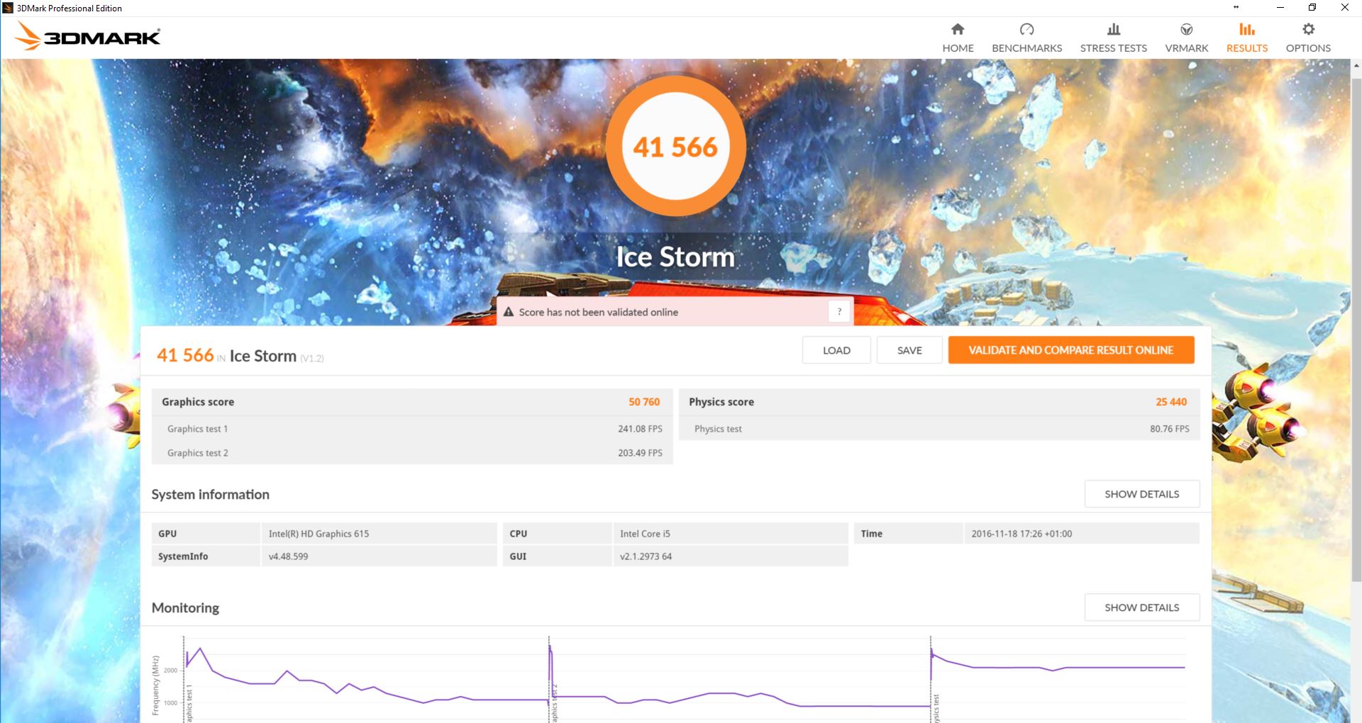 | 3DMark Ice Storm Standard Score | 41566 Punkte | |