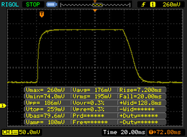 | 27 ms ... steigend ↗ und fallend ↘ kombiniert | ↗ 7 ms steigend | |