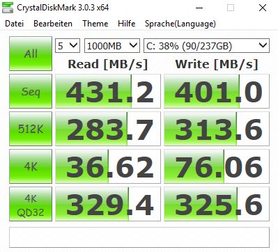 Die externe Kommunikation übernimmt ein Qualcomm Atheros QC61x4 WLAN-Modul. Dieses Modul arbeitet im 2,4-GHz, als auch im 5-GHz-Band und kann auch Geräte über Bluetooth verbinden. Theoretisch wäre es möglich 867 MBit/s zu übertagen. Beim Test mit dem Standardrouter konnten wir sehr gute 673 MBit/s beim Empfangen und 642 MBit/s beim Senden messen. Mit diesen guten Ergebnissen setzt sich das Acer Swift 7 an die Spitze und bleibt für die Kontrahenten unerreichbar. Im gesamten Testzeitraum gab es keine Probleme mit der Netzwerkverbindung. Auch das übertragen großer Datenmengen wurde schnell und zuverlässig abgeschlossen.