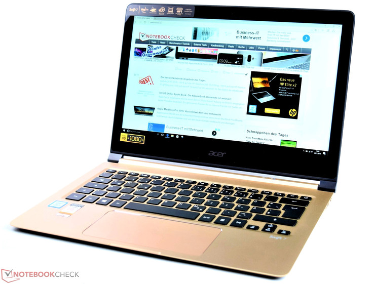 Mit nur 9,98 Millimetern ist das Acer Swift 7 das bislang weltweit dünnste Notebook der Welt. Das schwarz-goldene Farbdesign überzeugt, wirkt hochwertig und zieht die Blicke auf sich. Die superflache Konstruktion ist auf Grund der Materialauswahl trotzdem sehr stabil. Insgesamt präsentiert Acer hier ein richtig gutes Laptop. Die Verarbeitung ist tadellos, wie auch die Leistung, wenn man bedenkt, welche Rahmenbedingungen für die Hardware herrschen. Zum Testzeitpunkt liegt der offizielle Verkaufspreis bei 1.300 Euro.