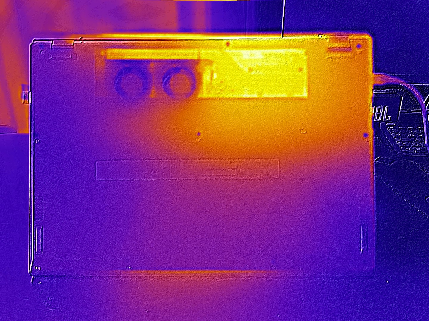 (-) Auf der Unterseite messen wir eine maximalen Wert von 60 °C (im Vergleich zum Durchschnitt von 36.8 °C).