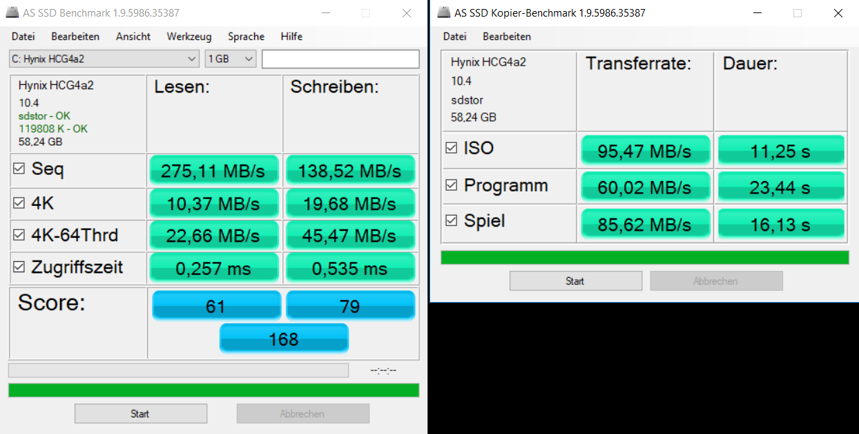 | Write 4k QD32 (MB/s) | 33.54 | 68.8 105% | 0.518 -98% | 1.043 -97% | 11.5 -66% |