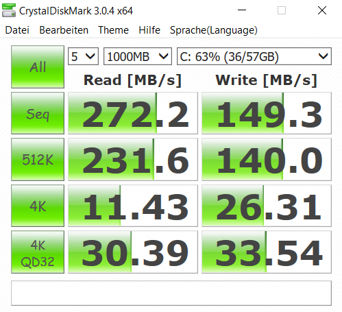| Read 4k (MB/s) | 11.43 | 28.11 146% | 0.378 -97% | 0.482 -96% | 6.705 -41% |