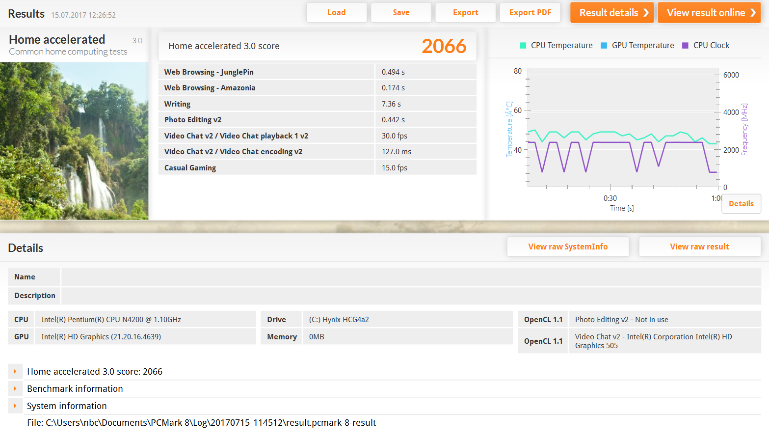 | PCMark 8 Home Score Accelerated v2 | 2066 Punkte | |