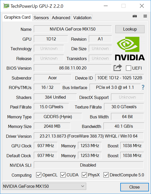 | Durchschnittliche NVIDIA GeForce MX150 (14.8 - 27, n=28) | |