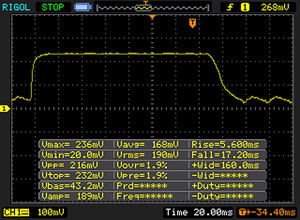 | 22 ms ... steigend ↗ und fallend ↘ kombiniert | ↗ 5 ms steigend | |