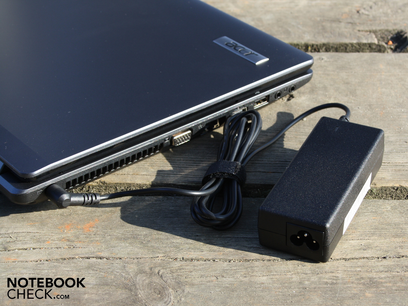 Auf einen Meister im Energiesparen weist das aber noch nicht hin. Selbst ein Core i5 Notebook wie das Toshiba Satellite Pro S500-115 liegt bei 9.5 Watt (IGP Grafik Intel HD). Die maximale Energieaufnahme, ermittelt begleitend zum Stresstest mit Prime95 und Furmark, liegt bei 44 Watt. Das schmale 65 Watt Netzteil (237 Gramm) ist dafür mehr als ausreichend dimensioniert.