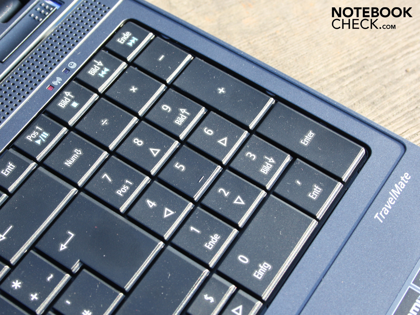 Der große Ziffernblock im Standard-Layout erleichtert die Eingabe von Zahlen. Beschwerlicher ist hingegen die Bedienung der winzigen Richtungstasten, welche unter der Shift-Taste eingequetscht sind. Es hätte einen kleinen Zwischenraum geben können, doch dieser wird vom Dollar- bzw. Euro-Symbol besetzt. Die winzigen Pfeiltasten schmälern den ansonsten guten Eindruck des übersichtlichen Tastaturlayouts.