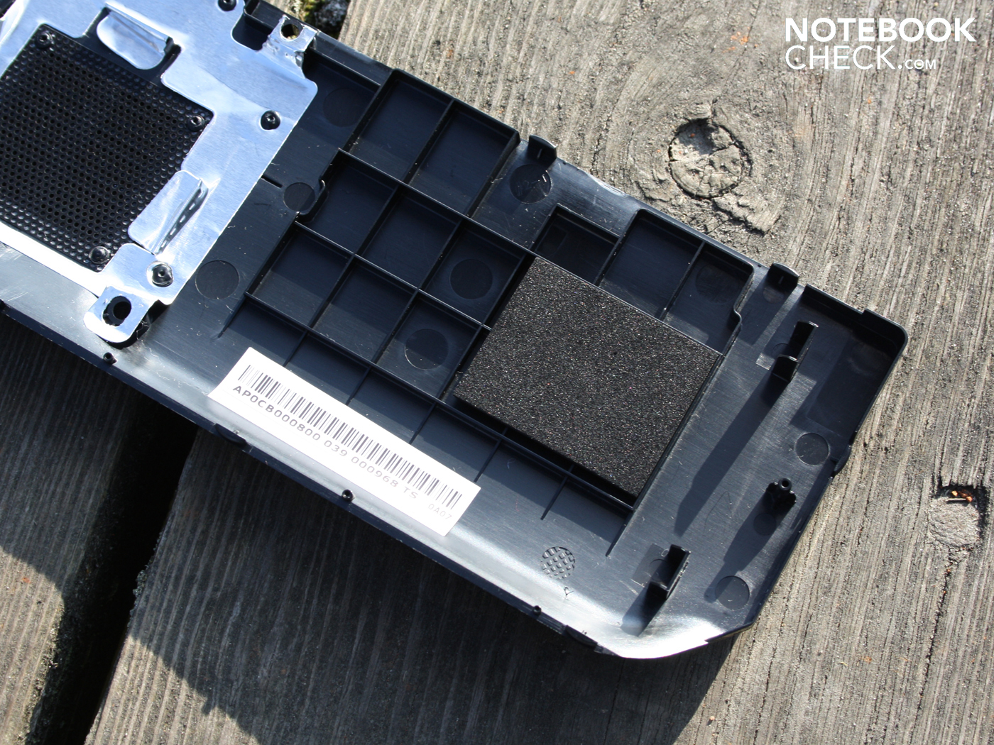Auf der Arbeitsumgebung sitzt die Handballenauflage hingegen an jeder Stelle fest. Druck kann sie zwar nicht eindellen, wohl aber das Tastenbett. Selbiges federt beim Tippen mittig und über dem DVD-Laufwerk.