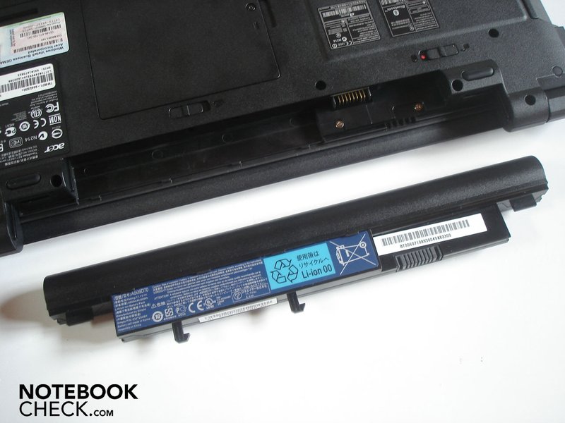 Bei DVD-Wiedergabe und mit maximaler Helligkeit reichte die Akkuladung 4 Stunden und 5 Minuten lang, was der Laufzeit von etwa zwei Filmen entspricht. Beim Internetsurfen über Wlan mit maximaler Helligkeit und moderaten Stromsparmechanismen hielt das Notebook hohe 5 Stunden und 45 Minuten durch. Die maximale Laufzeit (BatteryEater Readers Test) des sechs Zellen Akkus (56 Wh) belief sich sogar auf enorme 9 Stunden und 21 Minuten, bevor das TravelMate 8571 wieder an die Steckdose musste. Somit hat Acer sein Versprechen gehalten, sehr hohe Akkulaufzeiten von über 8 Stunden zu ermöglichen, eine reife Leistung.