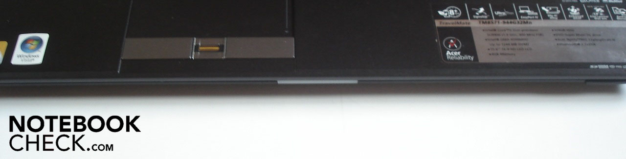 Drahtlose Verbindung erhält man indes über das integrierte Wlan 802.11 a/b/g/n respektive Bluetooth 2.1. Des Weiteren enthält das TravelMate 8571 noch eine Webcam mit der Auflösung 640 x 480 (@ 30fps) und gleich zwei integrierte Mikrofone für eine bessere Aufnahmequalität. Für die Sicherheit sorgen zudem ein Fingerabdrucksscanner, der unter dem Touchpad angebracht ist und ein „Anti-Shock Protection“ System, das die Festplatte vor Erschütterungen schützen soll. An der Softwarefront sind vor allem zwei mitgelieferte Programme erwähnenswert. So freuen sich Filmfreunde über WinDVD 8, wohingegen wichtige Daten mit dem Back Up Manager einfach gesichert werden können.