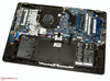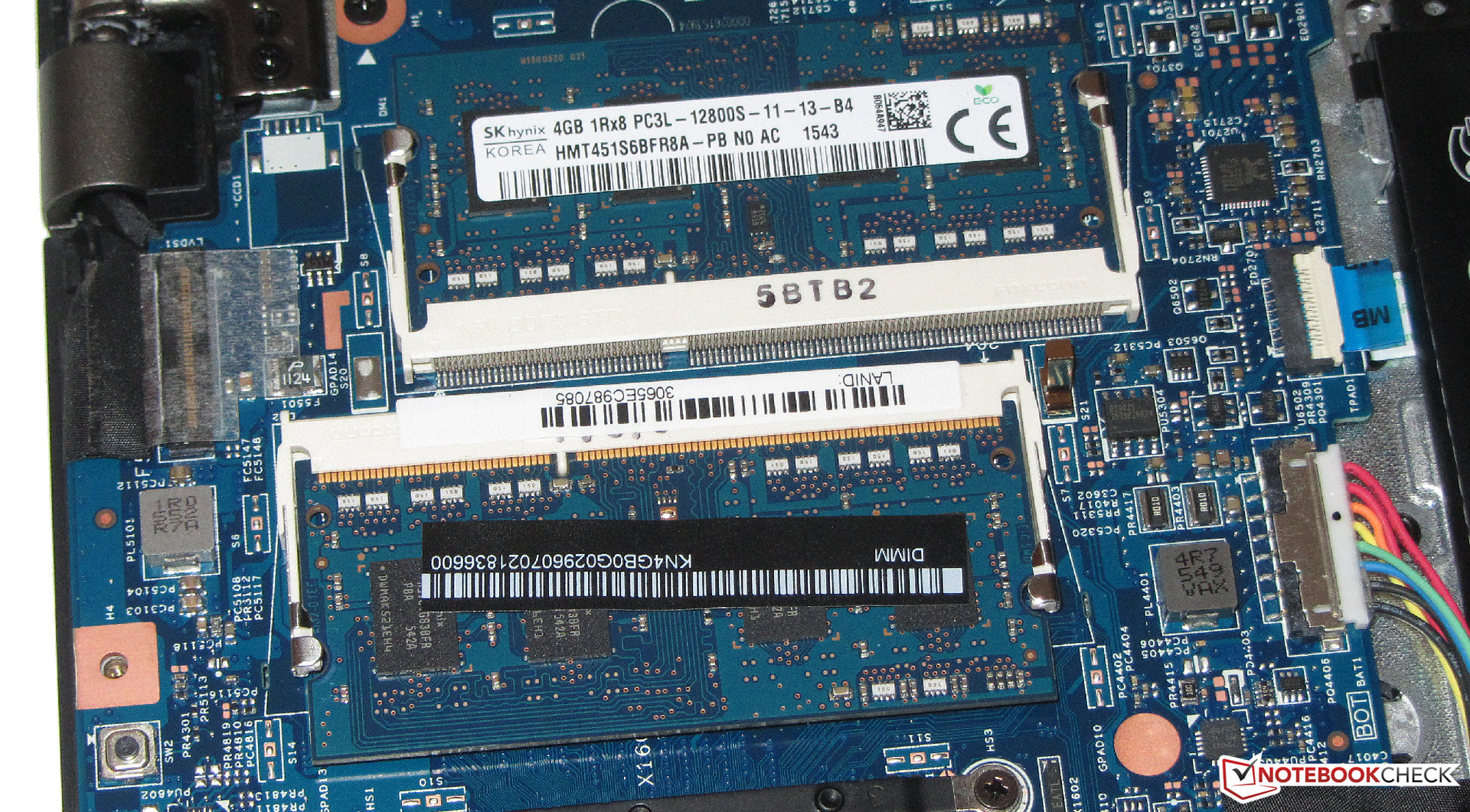 Da das Notebook über keine Wartungsklappe verfügt, muss zur Wartung/Aufrüstung die Unterschale des Rechners demontiert werden. Dazu werden alle Schrauben auf der Unterseite entfernt. Anschließend löst man die Unterschale mit Hilfe eines dünnen Spatels oder eines Fugenglätters. Dabei muss behutsam vorgegangen werden, denn die Unterschale wird von Kunststoffklammern gehalten, die leicht brechen können. Im Inneren des Rechners finden sich zwei Arbeitsspeicherbänke, die beide belegt sind. Die SSD (M.2 2280) kann problemlos getauscht werden. Auch eine Reinigung des Lüfters ist möglich.