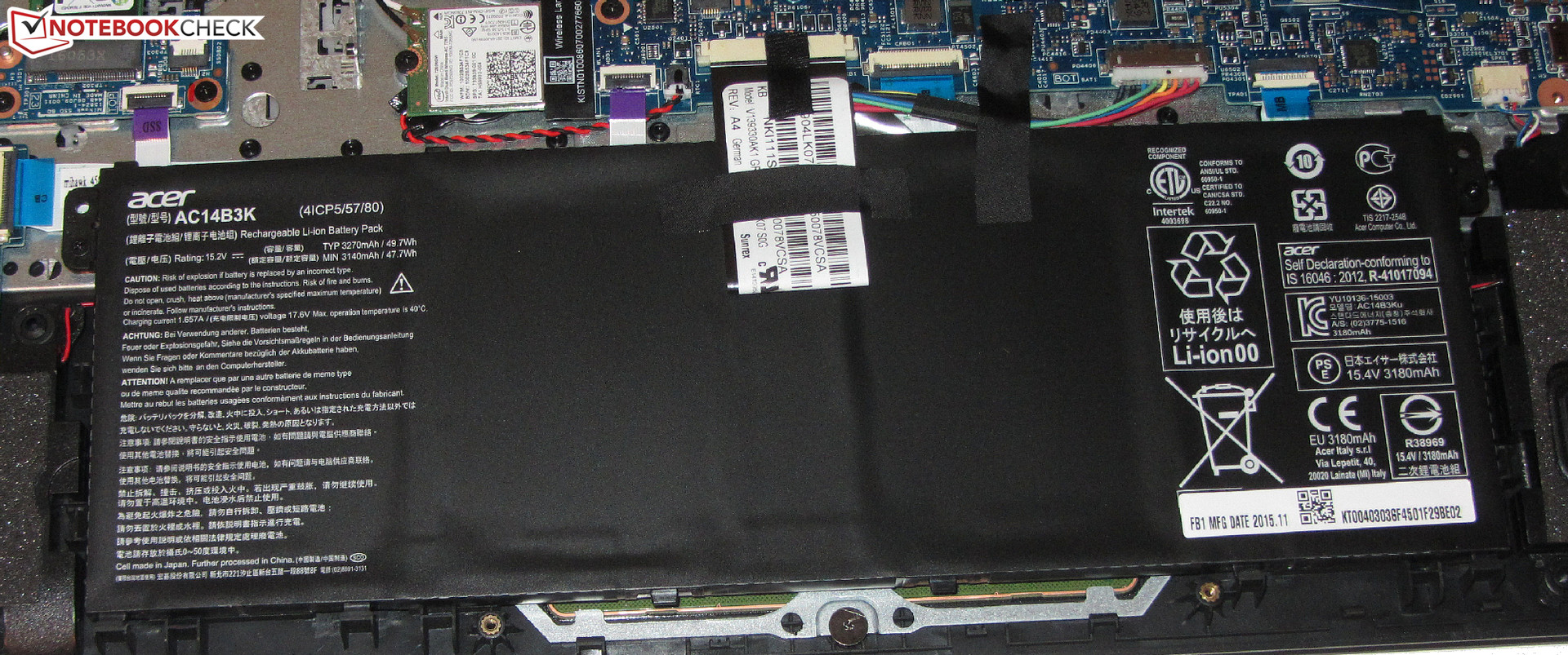 | Acer TravelMate P238-M-5575 49.7 Wh | Acer Aspire V3-372-50LK 51 Wh | HP ProBook 430 G3 P5T00ES 44 Wh | Apple MacBook Air 13 inch 2015-03 54 Wh | Lenovo IdeaPad 500S-13ISK 35 Wh | Acer TravelMate P236-M-57R4 49 Wh | HP Envy 13-d020ng 45 Wh | Schenker S306 45 Wh | Asus Zenbook UX303UA-FN121T 50 Wh | |
