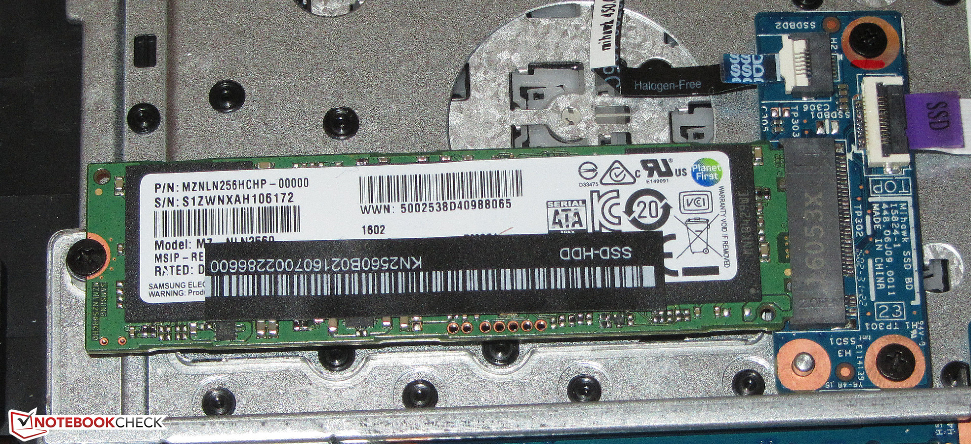 Als Systemlaufwerk dient eine Solid State Disk aus dem Hause Samsung. Es handelt sich hier um ein M.2-Modell (2280), das eine Kapazität von 256 GB bietet. Die SSD ist in eine Betriebssystempartition (118 GB) und eine Datenpartition (85,5 GB) unterteilt. Insgesamt stehen dem Nutzer des Notebooks etwa 180 GB zur freien Nutzung bereit. Der restliche Speicherplatz wird von der Windows Installation und der Recovery Partition in Beschlag genommen.