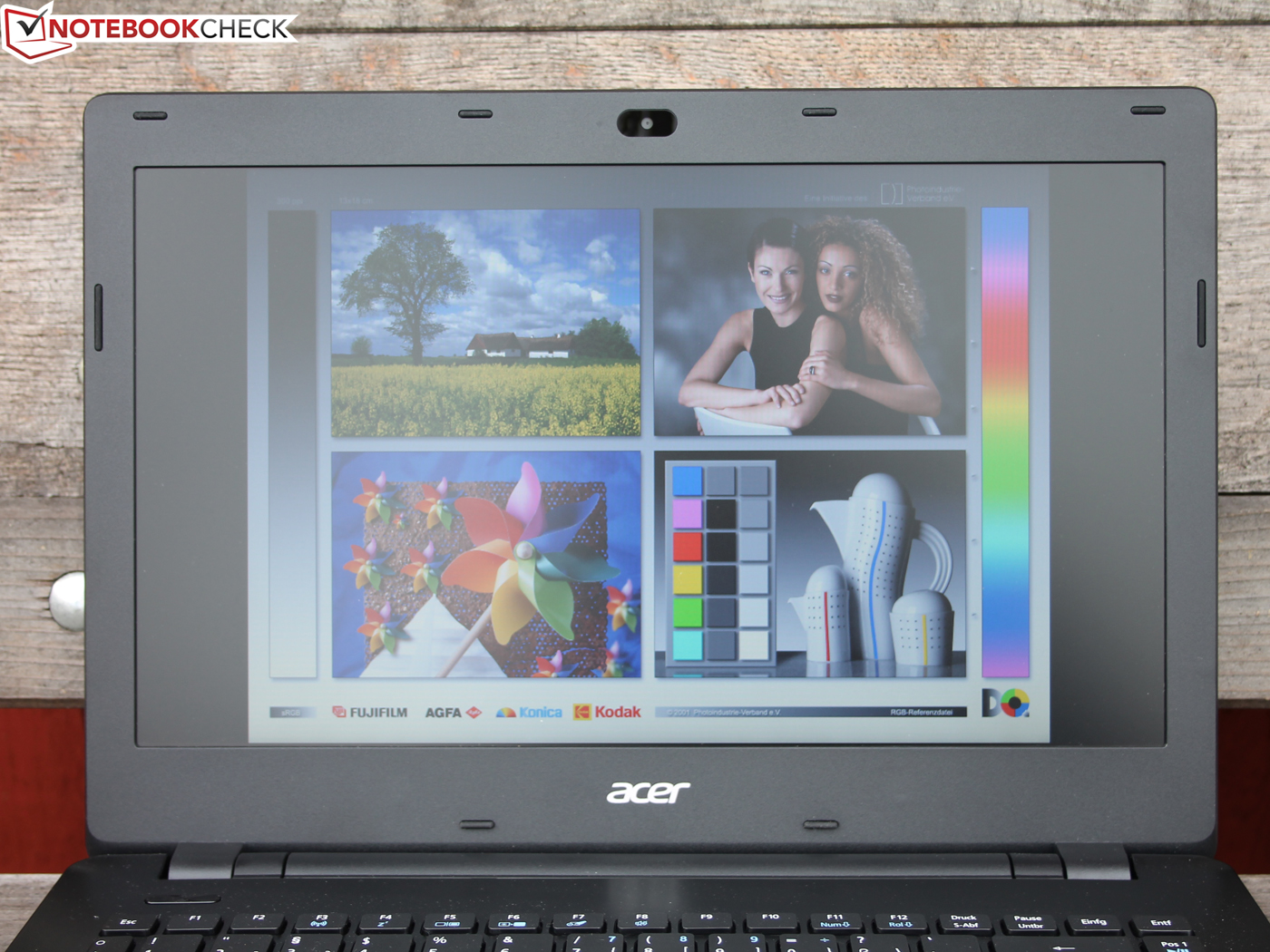 Typisch für TN sind die schwachen Blickwinkel und die Kontrastverschiebungen bei seitlichen Einblicken. Beim TravelMate P246 hat der Nutzer wenig Spielraum: Die beste Sicht auf den Desktop gibt es nur bei frontaler Ansicht. In dieser Beziehung sind zahlreiche Consumer Laptops mit IPS besser aufgestellt, allerdings sind diese unter 600 Euro ziemlich selten. Business Laptops mit IPS - dann in der Regel mit FHD - kosten mehr als 1.000 Euro, z. B. das Schwestermodell Acer TravelMate P645-MG.