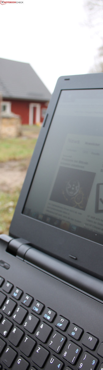 Die matte Oberfläche des Panels macht das Travelmate für den Außeneinsatz tauglich, allerdings liegt die bestmögliche Helligkeit unter dem Durchschnitt unserer Test-Notebooks. 300 cd/m² wären das Minimum, um angenehm im Sonnenschein arbeiten zu können.
