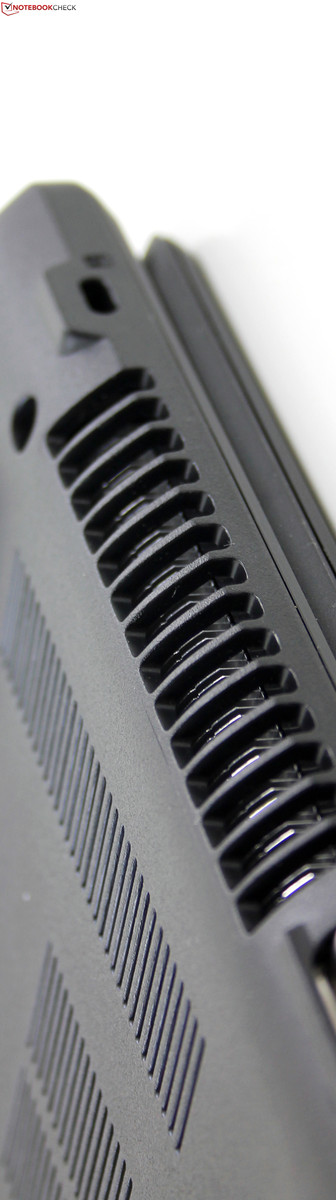 Die Konstruktion ist leidlich verwindungsfest, das gilt für Base und Deckel. Das Chassis können wir mit zwei Händen begrenzt verwinden, wobei sich wie üblich der Bereich unter dem optischen Laufwerk als Schwachstelle zeigt. Wer den 14-Zoller einhändig an einer der vorderen Ecken trägt, der wird bereits ein Verziehen der Base durch deren Eigengewicht bemerken. Dies ist jedoch bei vielen Notebooks so und kein gravierender Mangel. Das wichtige Areal der Handballenauflage, inklusive Touchpad und Tastenbett, dellt nicht ein und klingt auch nicht hohl. Bei normalen Schreibtätigkeiten ist der Eindruck bezüglich der Wertigkeit also nicht der schlechteste.