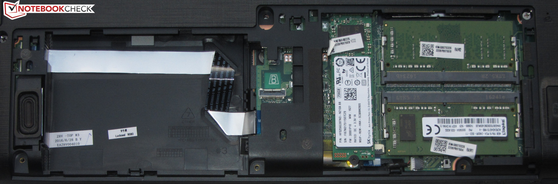 Auf der Unterseite des Rechners findet sich eine große Wartungsklappe. Hinter dieser verbergen sich die Arbeitsspeicherbänke und die Solid State Disk. Ein Fach für eine 2,5-Zoll-Festplatte ist ebenfalls vorhanden. Dieses kann aber nicht genutzt werden, da kein SATA-Steckplatz vorhanden ist. Um an die übrige Hardware zu gelangen, müsste das Gehäuse geöffnet werden.