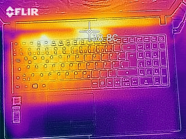 (+) Die Handballen und der Touchpad-Bereich sind mit gemessenen 23.9 °C kühler als die typische Hauttemperatur und fühlen sich dadurch kühl an.