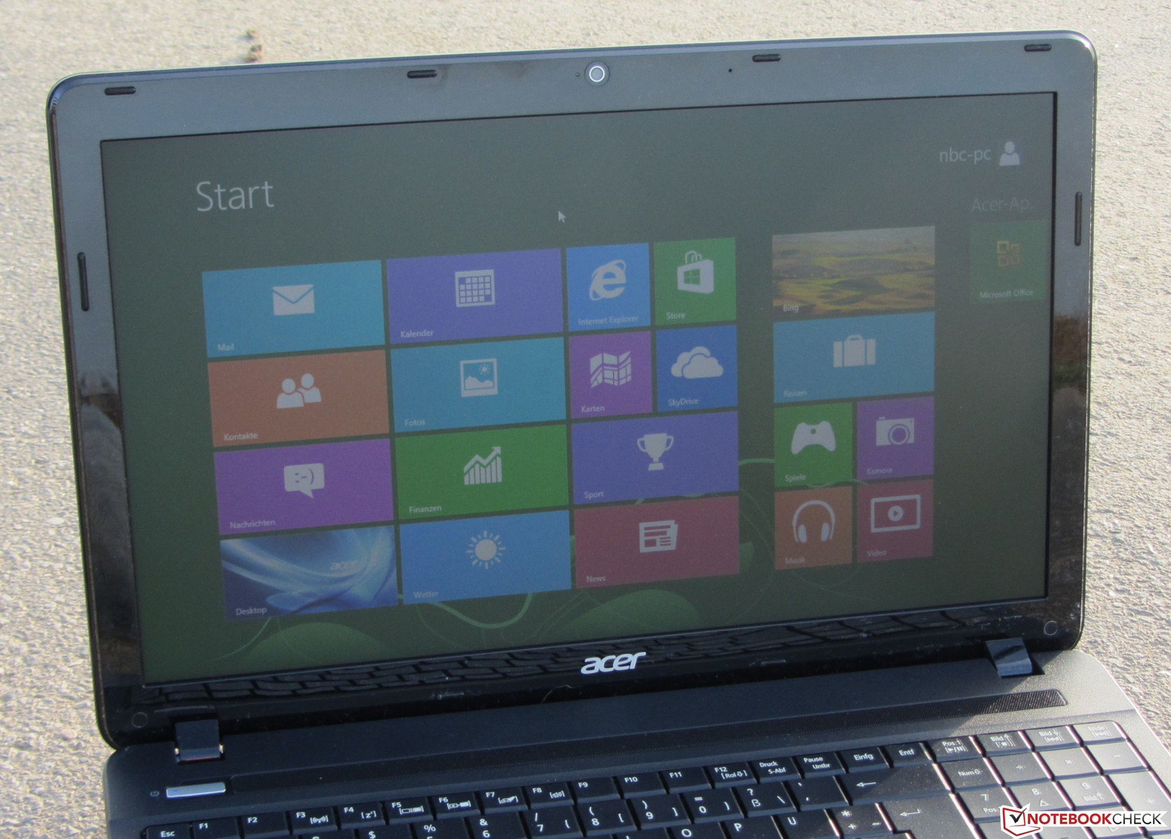 Für den Außeneinsatz eignet sich das Travelmate nicht unbedingt. Die Helligkeit des Displays sinkt im Akkubetrieb deutlich unter 200 cd/m² und damit unter den Mindestwert den ein für den Einsatz im Freien geeignetes Display mindestens bieten sollte. Durch die matte Oberfläche und den guten Kontrastwert ist ein Außeneinsatz zumindest dann möglich, wenn zu helle Umgebungen vermieden werden.