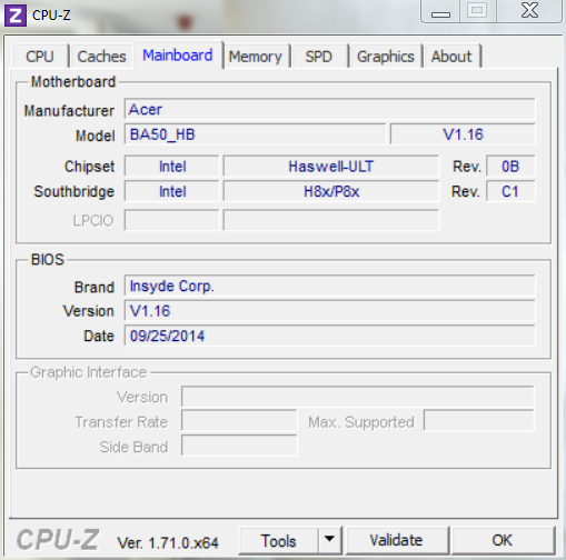 Die in die CPU integrierte Intel HD 4400 liegt hier in einer bis zu 950 MHz (Turbo) taktenden Variante vor. Sie verfügt über kein eigenes RAM, sondern greift wie die CPU auf den beim Acer P256-M-39NG im Single-Channel-Modus betriebenen Hauptspeicher zu und beherrscht DirectX 11.1, OpenCL 1.2 und OpenGL 4.0. Im Vergleich mit HD-4400-GPUs in schnelleren Haswell Prozessoren schlägt sich die im i3-4005U des TravelMate P256-M erstaunlich gut. Die nur zwei physischen und zudem eher niedrig taktenden CPU-Kerne lassen viel von der TDP für die GPU übrig, die außerdem bei der Zuteilung bevorzugt wird, sodass bei gleichzeitiger Auslastung zuerst die CPU-Kerne heruntergetaktet werden. Im reinen Grafiktest des 3DMark 11 liegt die beiden TravelMates auf Augenhöhe, während sich das B50-70 aus dem schon genannten Grund um 57 % absetzen kann. Erstaunlich: Egal, welche Windows oder Intel Energieeinstellungen man wählt: Der GPU-Takt liegt stets bei 950 MHz — und das auch im Idle-Betrieb. Stromsparen geht anders.