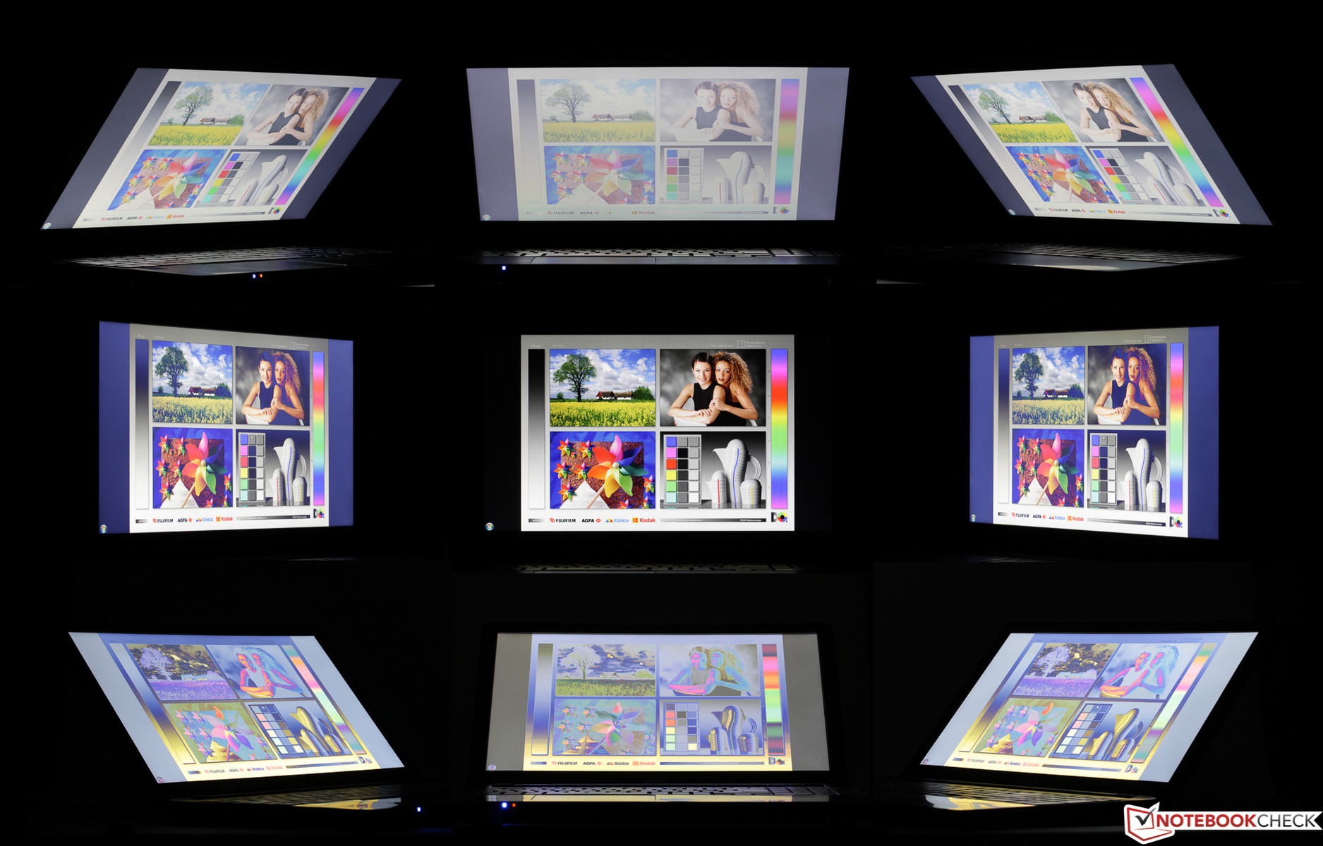 Zu hoch fällt der Schwarzwert von 0,66 cd/m² aus, der sich zusammen mit der noch mittelmäßigen Helligkeit auch für den sehr geringen Kontrast von nur 352:1 verantwortlich zeichnet. Ein mattes Schwarz erblickt auch das menschliche Auge nicht, allerdings wird die Beurteilung durch die weit unterdurchschnittliche Blickwinkelstabilität erschwert - dazu gleich mehr. Durch seinen etwas besseren Schwarzwert kommt das TravelMate P455-M trotzdem noch nahezu auf den gleichen Kontrast wie das P256-M, während das Lenovo in jeder Hinsicht den Vogel abschießt. DeltaE-Werte von 10 sind für TN-Panels leider üblich und schon nicht gut, aber nahezu 12 bis 13 wie beim Testgerät muss man schon als übel bezeichnen. Viel besser machen die beiden Konkurrenten es aber auch nicht. Die Abstimmung ist viel zu kühl, was hier für einen selten kräftigen Blaustich über das gesamte Helligkeitsspektrum sorgt. Eine Profilierung mittels CalMAN-Kolorimeter schafft Besserung, das Profil für unser Testgerät ist im Infokasten verlinkt. Den Gamma-Wert haben wir mit 3,09 gemessen, das Windows Soll liegt bei 2,2. Als befriedigend schätzen wir die Bildschärfe ein; bei einigen Kombinationen von Schrift- und Hintergrundfarben wirken Schriftkanten etwas weich. Nicht schlecht sieht es mit der Farbraumabdeckung aus, die 53 % des nur für (semi-)professionelle Bildbearbeiter relevanten, großen AdobeRGB-Farbraums erreicht. In dieser Disziplin sehr gute TN-Panels schaffen auch mal 60 %. Alles in allem ist das Display des Testgerätes tatsächlich der sprichwörtliche einäugige König unter den Blinden.