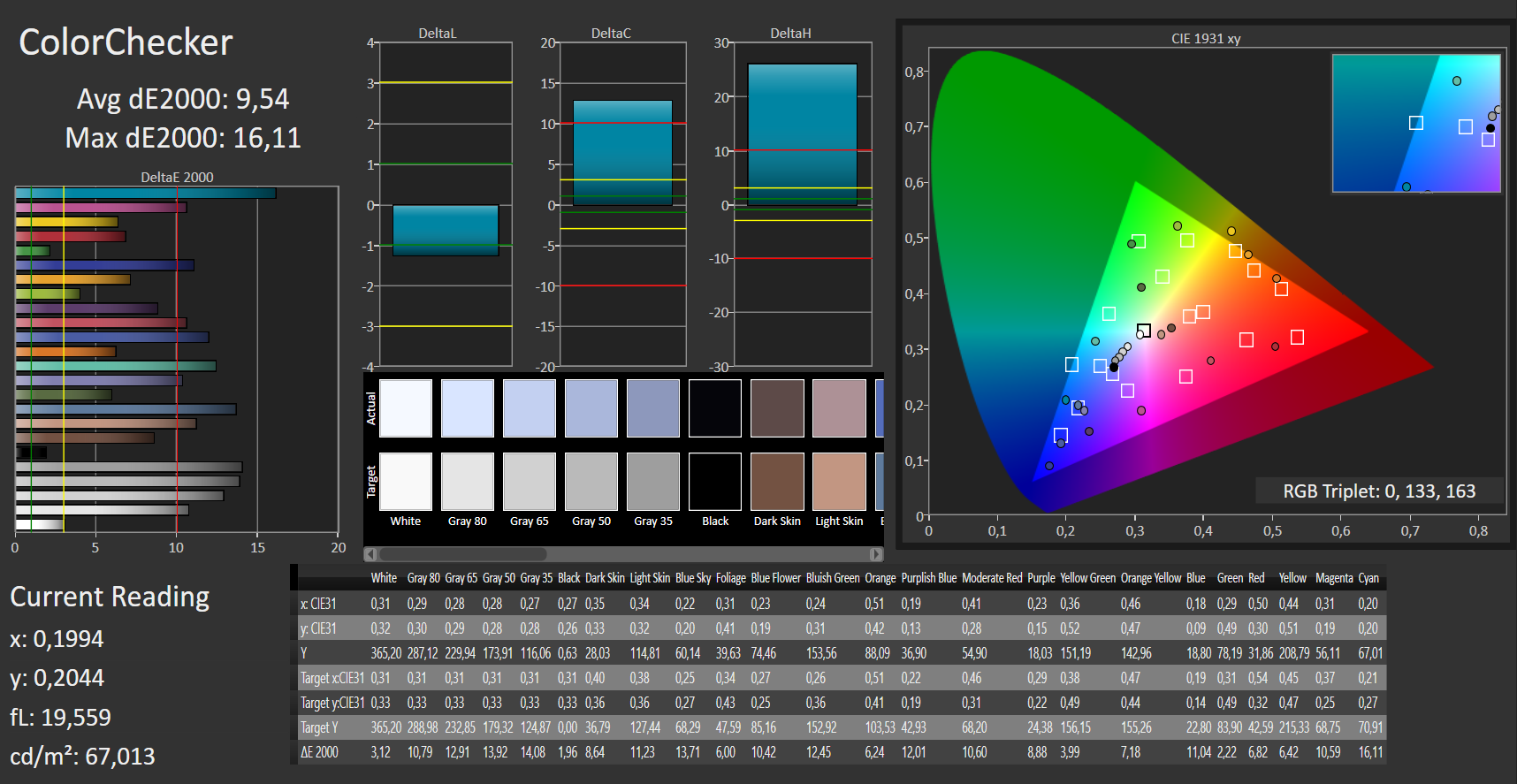 ΔE ColorChecker Calman: 9.54 | ∀{0.5-29.43 Ø4.78}