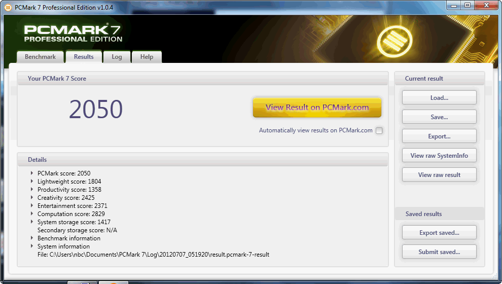 Der PCMark 7 bewertet alle Komponenten und berechnet einen Gesamt-Score (2.050 Punkte). Das 8473TG war 14% langsamer. Wie auch der Windows-Leistungsindex (4.6) zeigt der Futuremark-Test die HDD als Bremse. 1.417 Punkte im System-Storage Sub-Score werden spielend von jedem SSD-System übertrumpft (ab 4.000 Punkte): Ein Lenovo ThinkPad L420 (i5 2520M) war allerdings genau so langsam. Ein ThinkPad T530 2429-5XG mit 7200 RPM HDD ist in dieser Disziplin auch nur 26% schneller. Erst ein SSD-basiertes Lenovo ThinkPad T420s 4174-PEG (Intel SSD 320) legt satte 218% drauf und kommt in der Endnote auf ein Plus von 62%.