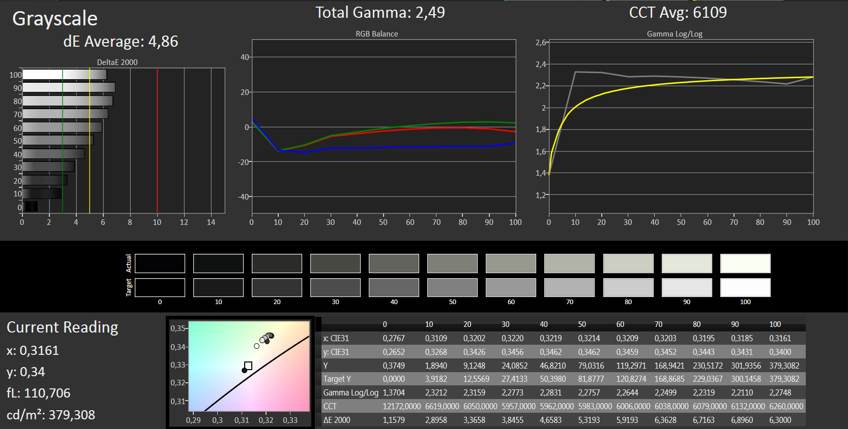 ΔE Greyscale Calman: 4.86 | ∀{0.09-98 Ø5}