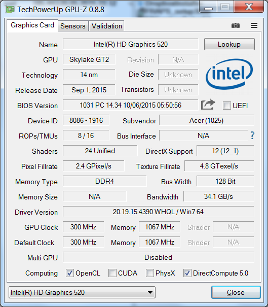 Die in die CPU integrierte GPU Intel HD 520 ohne dedizierten Speicher ist in Skylake-ULV-Prozessoren mit 15 Watt nominaler TDP anzutreffen und taktet mit maximal 1.050 MHz (Turbo). Skylake kann erstmals mit DDR4-Speicher umgehen und profitiert davon auch grafikseitig deutlich. Eine für 520er-Verhältnisse relativ hohe Performance wird auch dadurch ermöglicht, dass die GPU auf Dual-Channel-RAM zugreifen kann. So können die schnellsten 520er in i7-CPUs durchaus mal das (ebenfalls niedrige) Niveau einer dedizierten Nvidia GeForce 820M erreichen.
