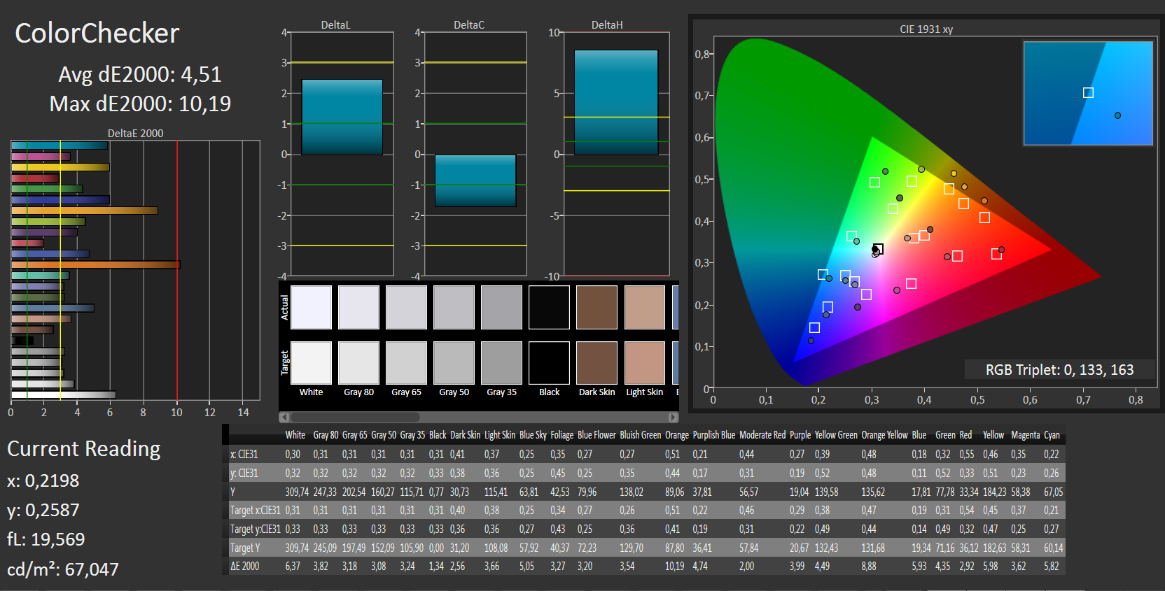 ΔE ColorChecker Calman: 4.51 | ∀{0.5-29.43 Ø4.78}