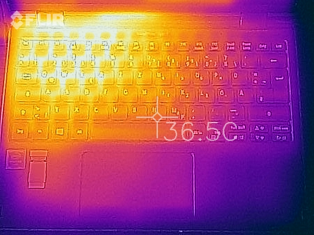 (+) Die Handballen und der Touchpad-Bereich erreichen maximal 34.6 °C und damit die typische Hauttemperatur und fühlen sich daher nicht heiß an.