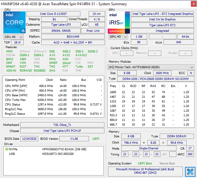 | 85.2 % v7 (old) | 04 / 2021 | Acer TravelMate Spin P4 TMP414RN-51-53J8 i5-1135G7, Iris Xe G7 80EUs | 1.4 kg | 17.9 mm | 14.00" | 1920x1080 | |