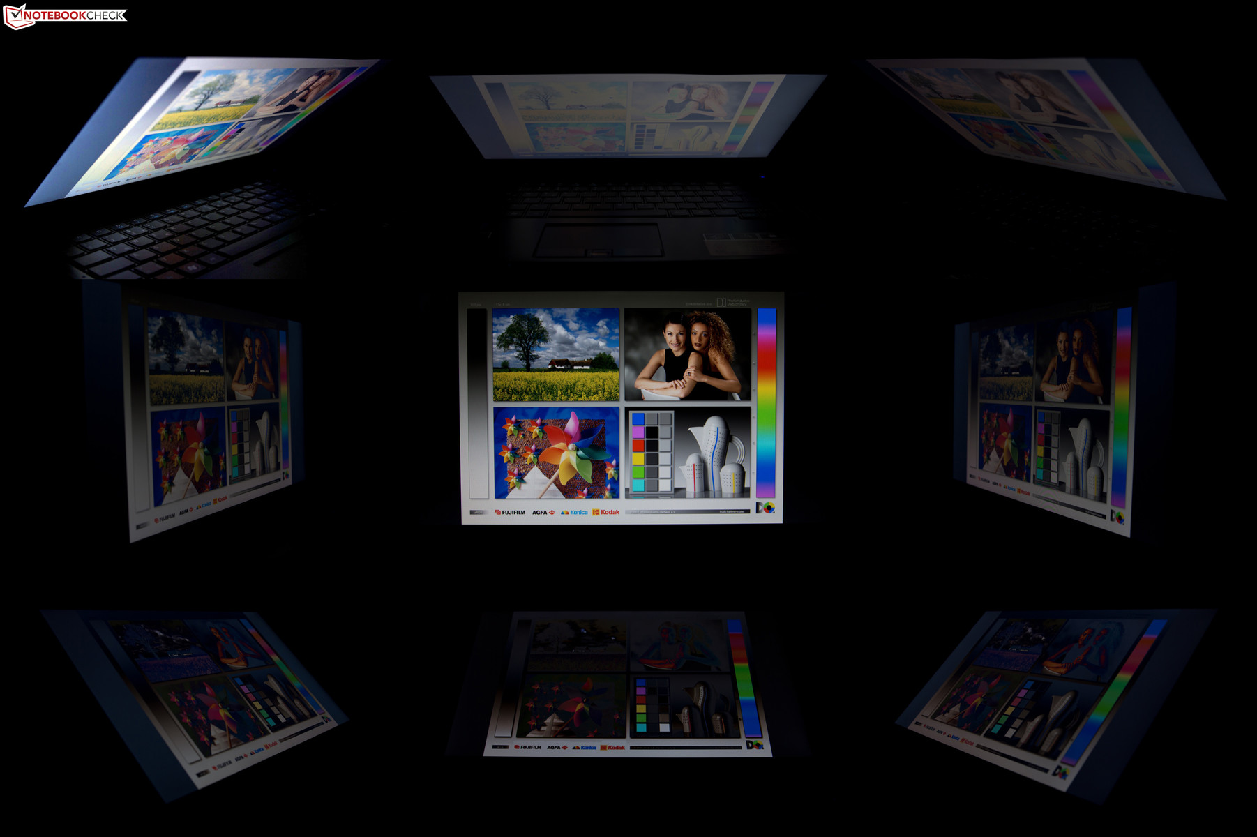Die Blickwinkelstabilität entspricht einem günstigen TN-Panel. Die horizontale Wiedergabe ist auch in flachen Winkeln noch relativ stabil. Im Vergleich dazu kommt es bei vertikalen Bewegungen der Anzeige schnell zu einem Aufblenden oder Invertieren des Referenzbildes.