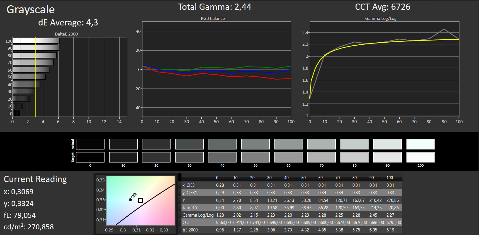 ΔE Greyscale Calman: 4.3 | ∀{0.09-98 Ø5}