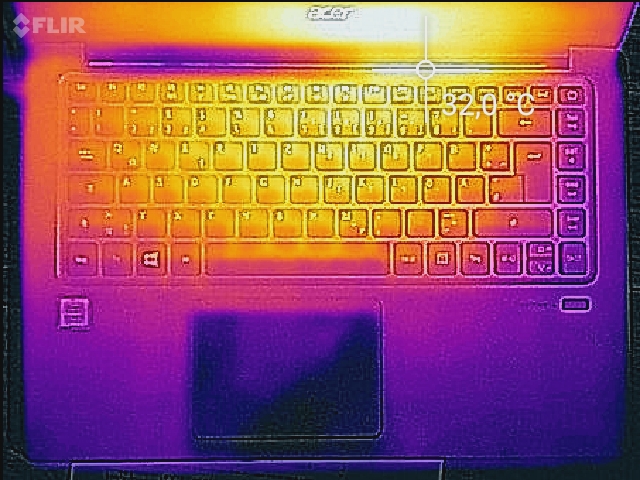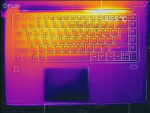 (+) Die Handballen und der Touchpad-Bereich sind mit gemessenen 27.1 °C kühler als die typische Hauttemperatur und fühlen sich dadurch kühl an.