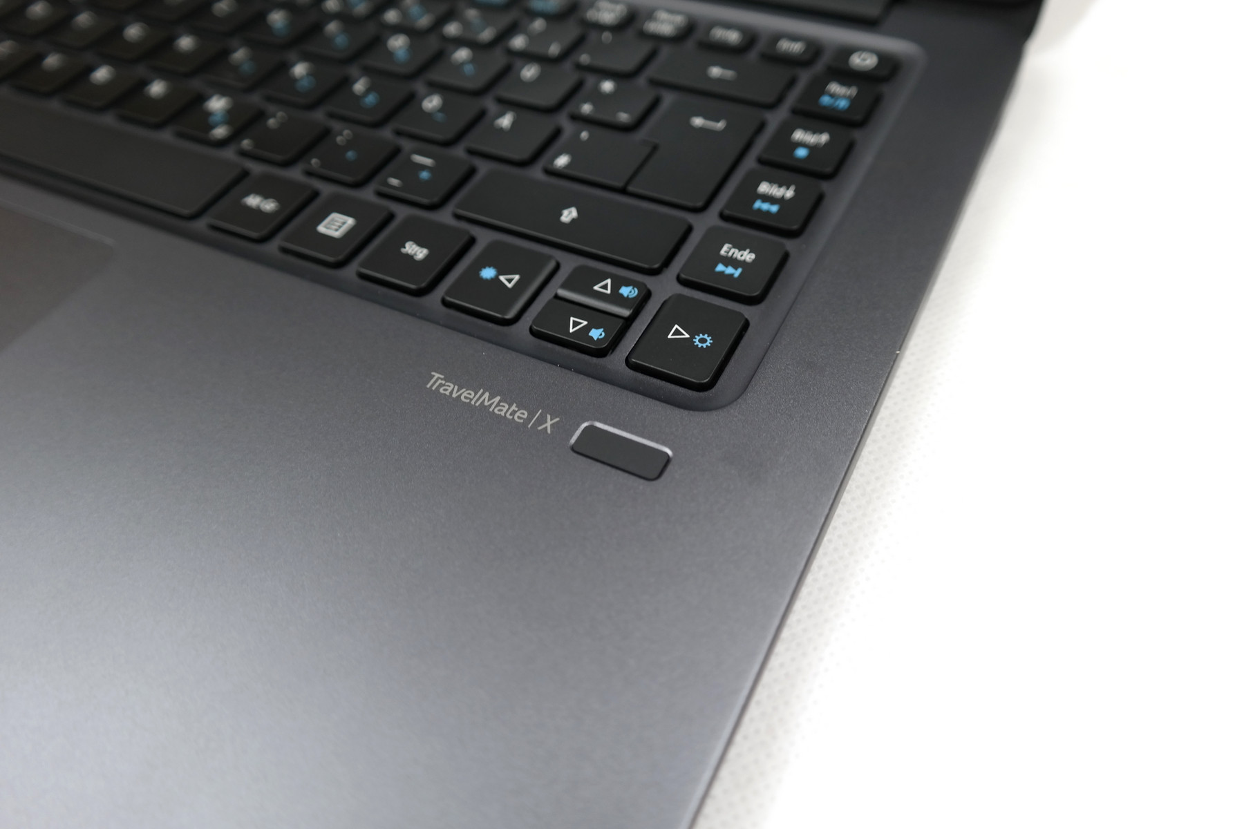 Ein Fingerabdrucksensor, der Windows Hello unterstützt, findet sich auch in der Neuauflage des X349. Eine biometrische Identifikation via Kamera ist indes nicht möglich. Außerdem ist ein TPM 2.0 (Trusted Platform Module) eingebaut. Der Acer ProShield Manager soll das Notebook durch Pre-Boot-Authentifizierung vom BIOS bis zu den Programmen schützen. Auf der rechten Seite findet sich auch eine Aussparung für ein Kabelschloss. Das Gerät unterstreicht damit seine Business-Ambitionen.