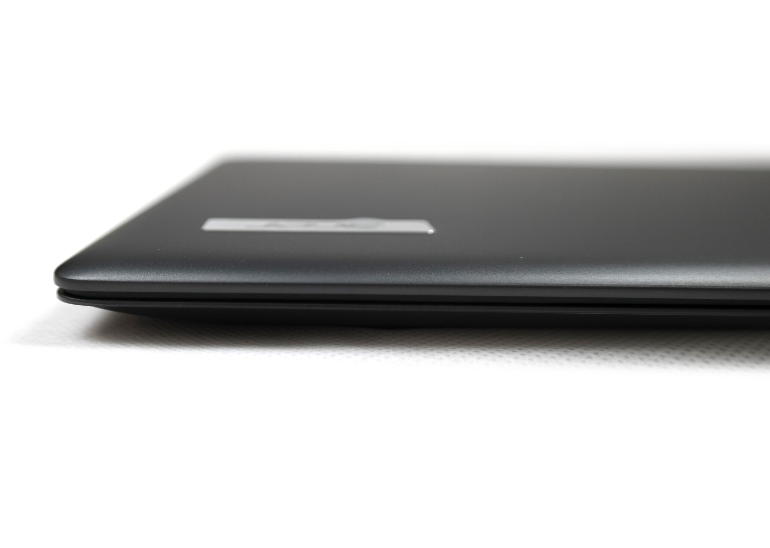 Das Gehäuse entspricht dem bereits getesteten Modell mit Skylake CPU. Gefertigt ist es komplett aus stabilem Aluminium in einem dunklen Anthrazitton hat eine matte Oberfläche erhalten. Das Notebook kann einhändig aufgeklappt und der Deckel bis zu 180° gedreht werden. Durch einen gummierten Deckelrahmen wird der Bildschirm von der Base Unit auf Distanz gehalten. Eine Wartungsklappe gibt es nicht. Das Gehäuse kann allerdings leicht komplett geöffnet werden, und man erhält Zugang zu allen Teilen.