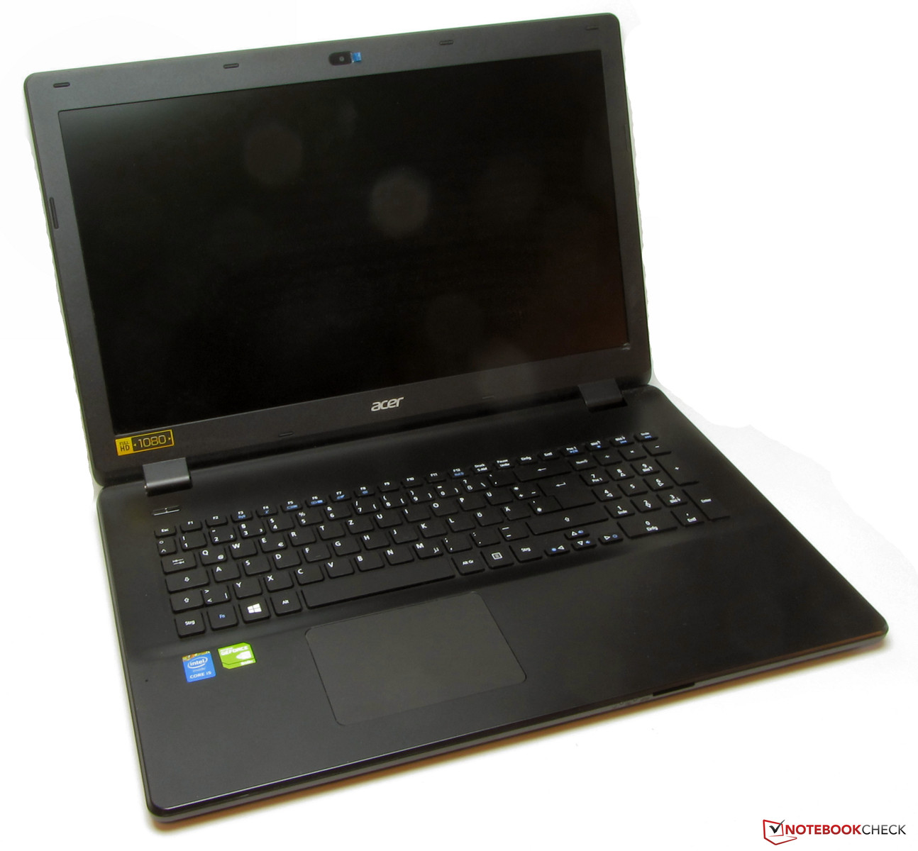 Das matte 17,3-Zoll-Display des Travelmate verfügt über eine native Auflösung von 1.920 x 1.080 Bildpunkten. Es arbeitet mit einer Helligkeit von 317,3 cd/m² - ein guter Wert. Damit schneidet es besser ab als seine beiden Konkurrenten Asus Asuspro P750LB-T2057G (236,1 cd/m²; HD+) und HP Probook 470 G1 (258 cd/m²; HD+).