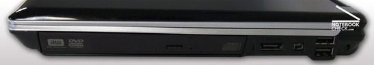 Rechte Seite: DVD-Laufwerk, eSATA, Firewire, 2x USB