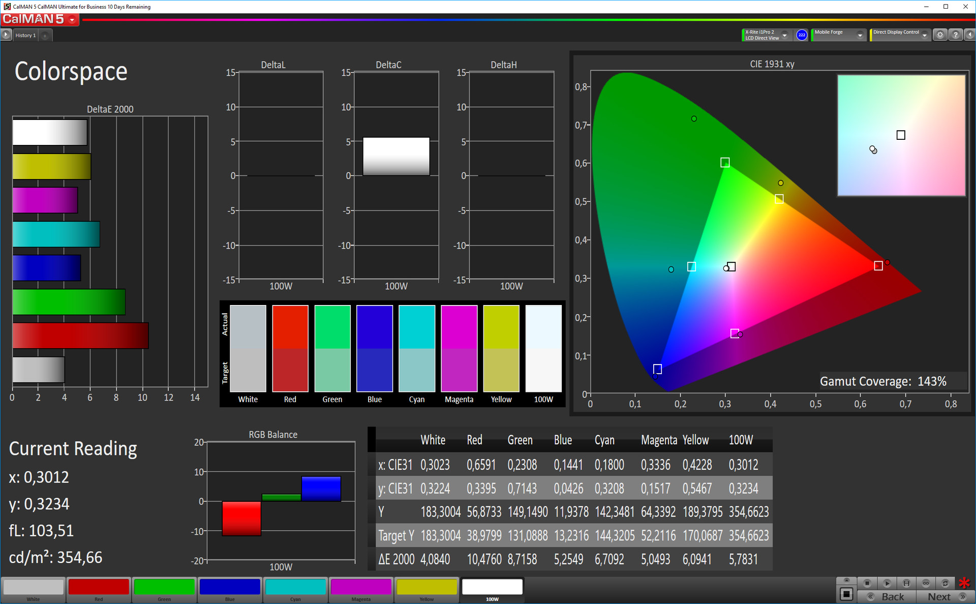ΔE ColorChecker Calman: 5.9 | ∀{0.5-29.43 Ø4.78}