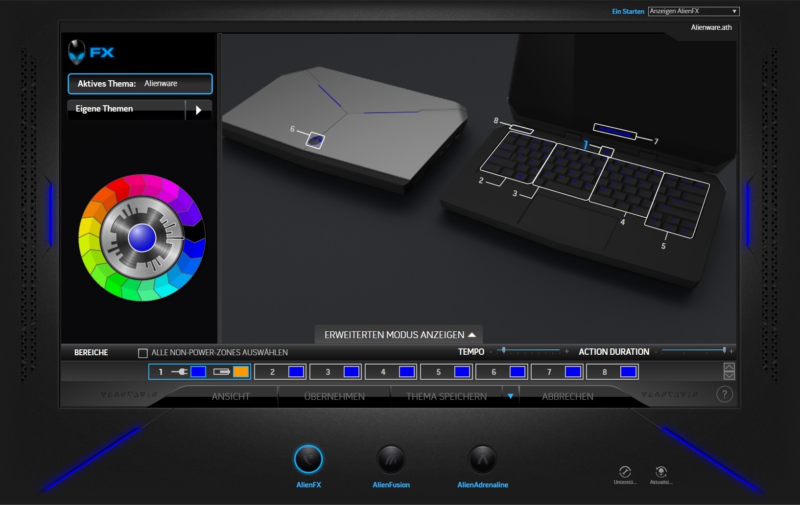 Die Gehäuse-Oberflächen können ebenfalls recht heiß werden. Maximal 63 °C im hinteren Drittel sprechen gegen einen Einsatz auf dem Schoß. Im Idle-Betrieb muss sich das Alienware 13 keine Kritik gefallen lassen. Nach zwei Stunden Leerlauf ermittelten wir eine Durchschnittstemperatur von 28 °C – ein gutes Ergebnis.