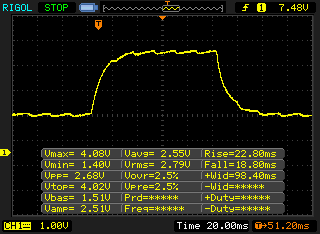 | 32 ms ... steigend ↗ und fallend ↘ kombiniert | ↗ 18 ms steigend | |