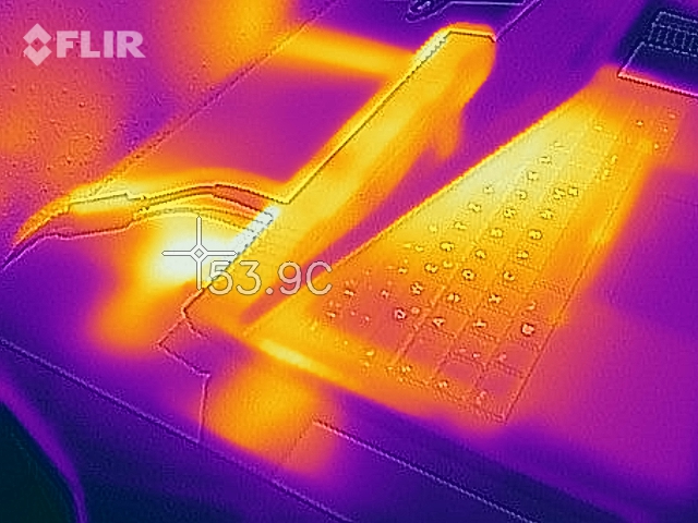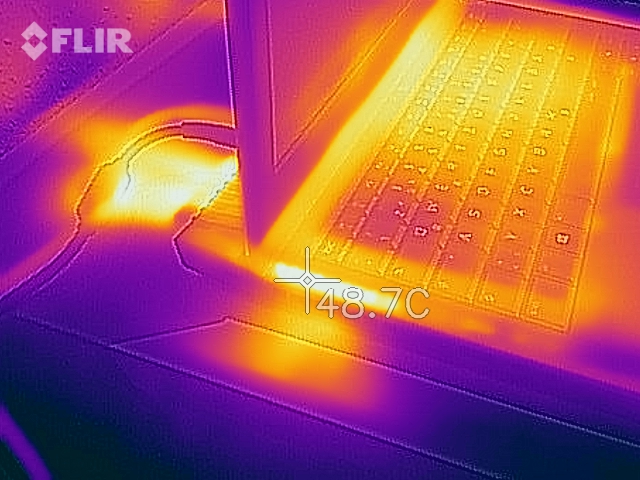 (+) Die Handballen und der Touchpad-Bereich erreichen maximal 32.7 °C und damit die typische Hauttemperatur und fühlen sich daher nicht heiß an.