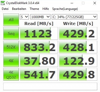 Differenzen von über 10 °C sind nach unseren Erfahrungen eher ungewöhnlich. Beim Schenker XMG P507 trennten die Kerne zum Beispiel nur 4 °C. Immerhin trat – abgesehen von sehr kurzen Einbrüchen auf 700 MHz (laut HWiNFO) – kein starkes Throttling auf. Den Stresstest absolvierte der Core i7-7700HQ mit ordentlichen 2,6 GHz.