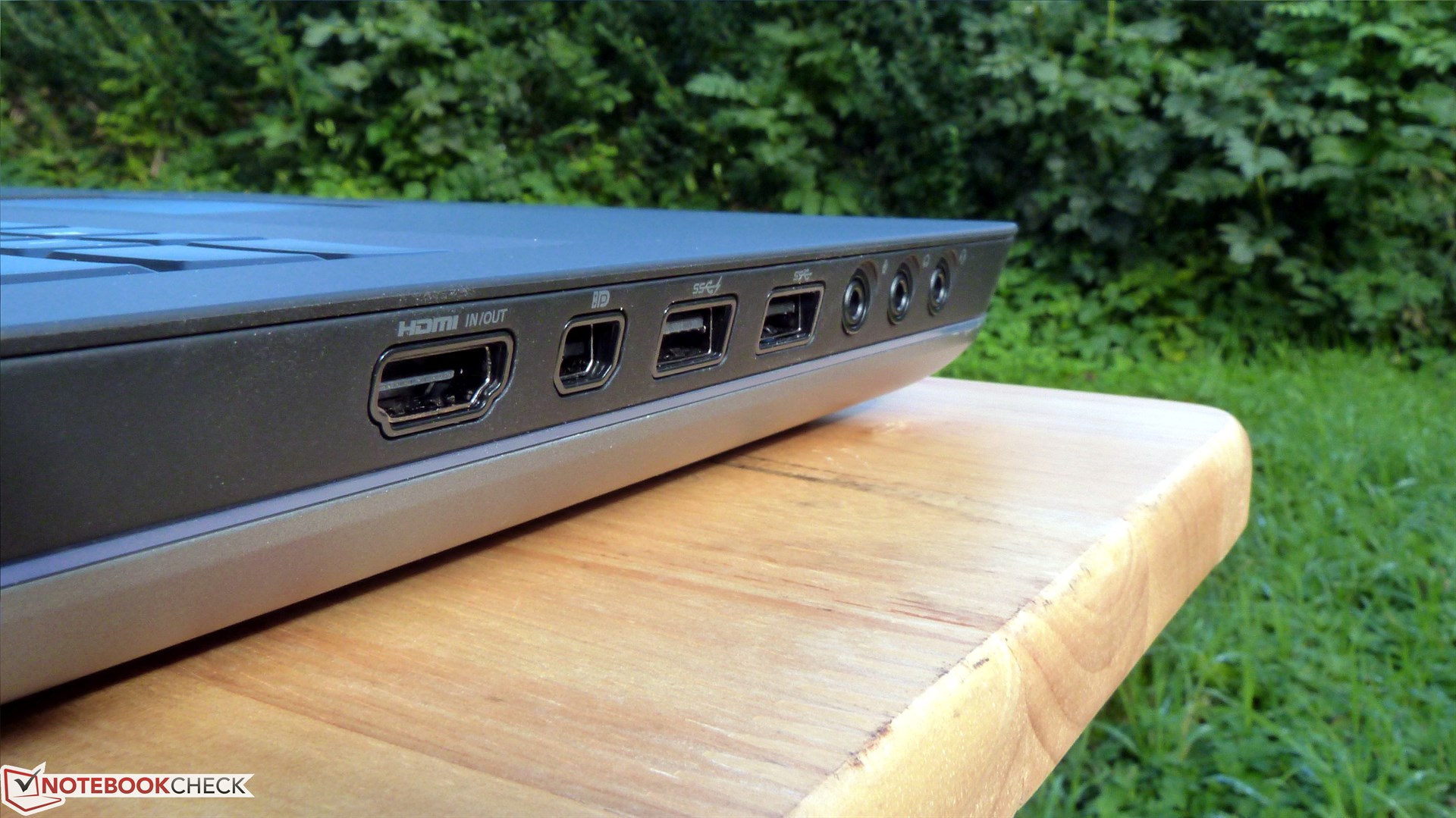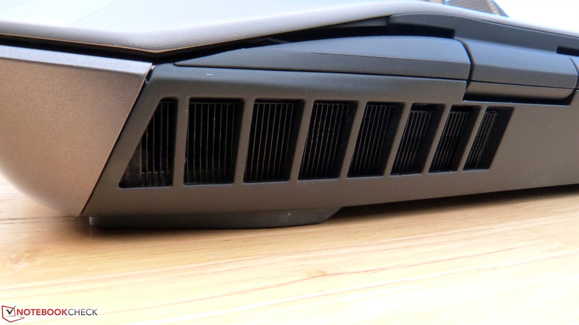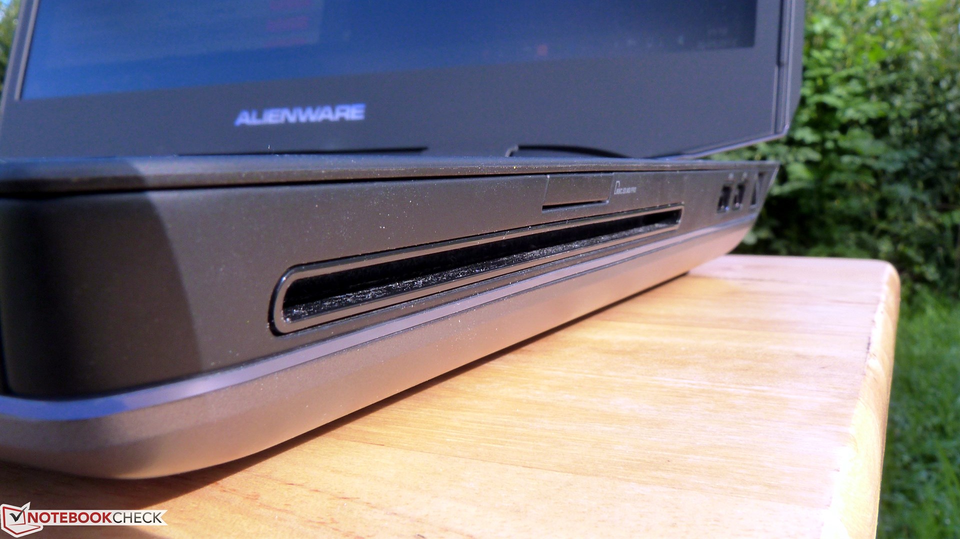 So warten die meisten Anschlüsse auf der linken Notebookseite. Neben dem am hinteren Ende gelegenen Netzteilstecker und dem Kensington-Lock finden sich mittig ein kombinierter HDMI Ein- und Ausgang sowie ein Mini-DisplayPort. Weiter vorne verbaut Alienware zwei USB-3.0-Anschlüsse und drei Klinkenstecker für Audiogeräte. Dank HDMI-Eingang lässt sich das Notebook auch als externer Bildschirm nutzen, beispielsweise für eine Spielkonsole.