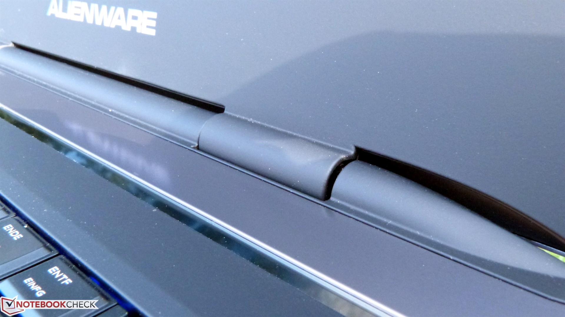Trotz dieses verspielten Effekt-Overkills wirkt das Gehäuse hochwertig. Die Verarbeitung ist vorbildlich und dem hohen Preis in jedem Punkt angemessen. Auch die sehr schwergängigen Displayscharniere passen da gut ins Bild - wer das Alienware 17 nutzt, wird nicht so schnell Angst haben, seine Anschaffung mit einer unbedachten Bewegung zu ruinieren. Flexing ist dabei trotz des hohen Gewichtes kein Problem: Wer stark genug ist, das Notebook mit einer Hand an einer Kante zu heben, läuft nicht Gefahr das teure Innenleben zu ruinieren.