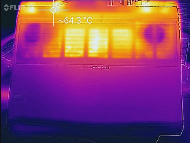 (-) Auf der Unterseite messen wir eine maximalen Wert von 56 °C (im Vergleich zum Durchschnitt von 43.3 °C).