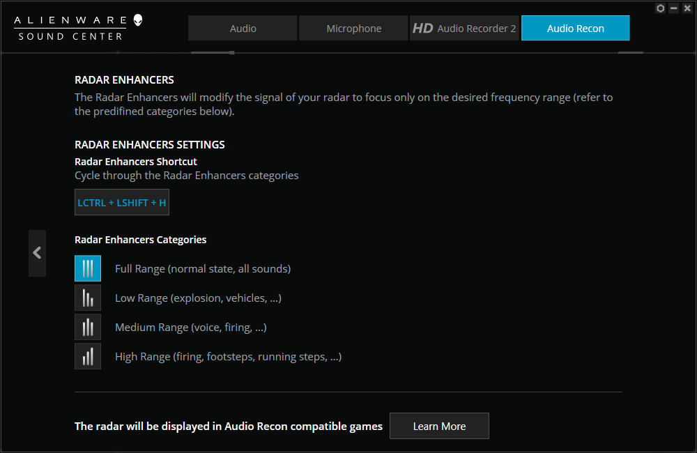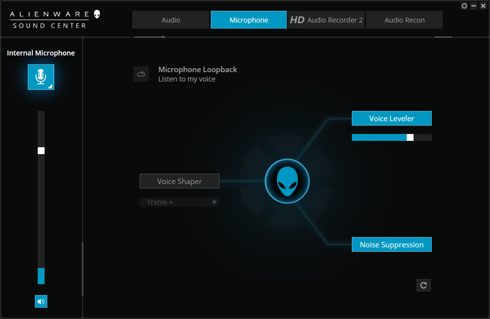 Laut Dell befindet sich in dem neuen Gehäuse ein überarbeitetes 2.1-Soundsystem. Tatsächlich ist die Klangqualität sehr gut, denn es gibt deutlich mehr Bass als bei vielen normalen oder dünnen Geräten. Da sich die Lautsprecher sowie der Subwoofer jedoch im vorderen Bereich der Baseunit befinden, vibriert die Handballenauflage schon bei 50 % der maximalen Lautstärke. Der maximale Pegel ist sehr hoch, und es gibt keine Verzerrungen. Aufgrund der lauten Lüfter kann man den guten Sound beim Spielen jedoch kaum genießen. Wir empfehlen die Sample-Rate innerhalb des Alienware Sound Tools auf 192 kHz zu stellen und den Bass zu verstärken, um das meiste aus den Boxen zu holen.
